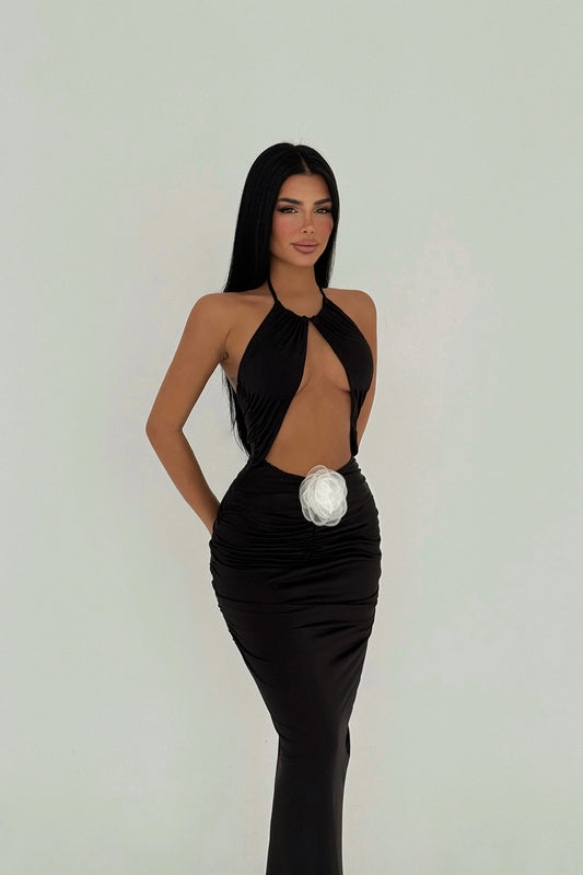 Black Kalika Rose Detail Dress ATE-1517