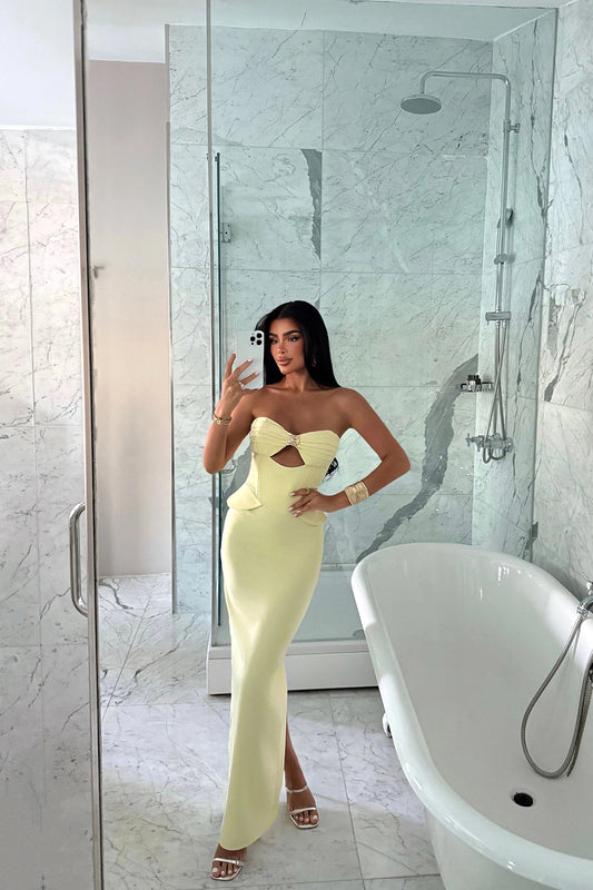 Yellow Soho Corset Detailed Long Dress ATE-3202