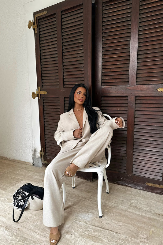 CREAM POCKET DETAIL DOUBLE BREASTED COLLAR SET ATE-2438