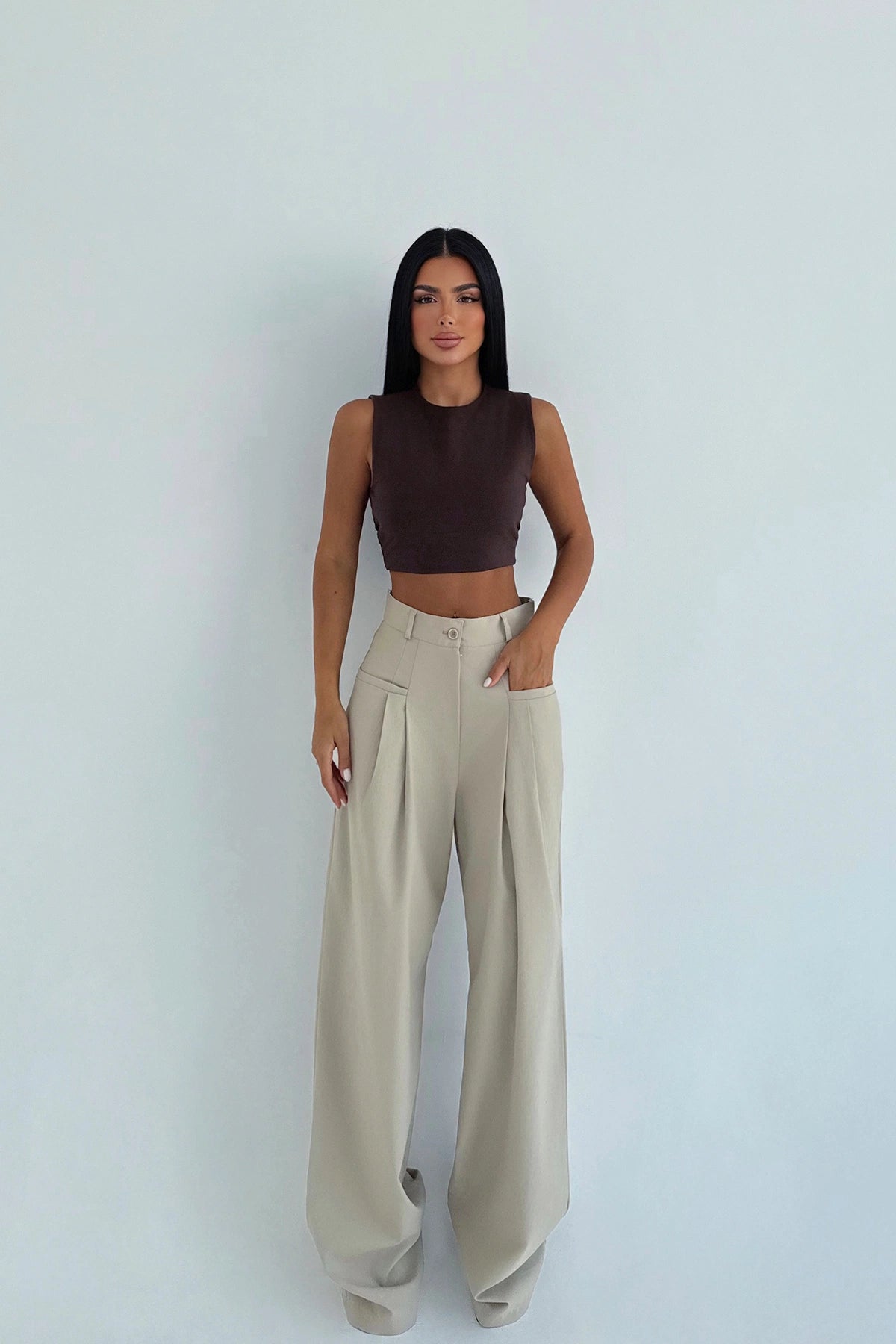 Cream Pocket Detail Palazzo Trousers ATE-2287